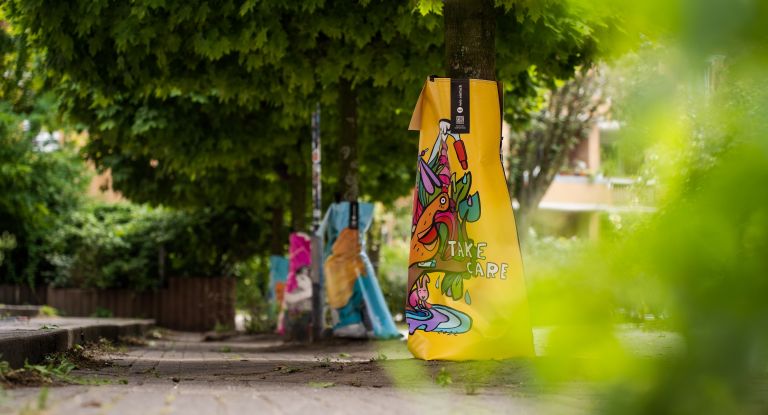 Deshalb haben wir die Baumbewässerungssack-Aktion #artfortrees ins Leben gerufen. Sie kombiniert Nachhaltigkeit und Kunst im urbanen Raum und setzt ein buntes Zeichen für Engagement, Umweltschutz und Achtsamkeit. Mit den bunten Motiven wollen wir Euch dazu animieren, Euch für die Straßenbäume zu engagieren!