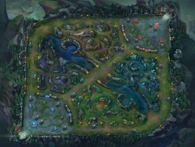 - Die Karte ist in drei „Bahnen“ (Top, Mitte, Bottom) und einen Dschungelbereich unterteilt.