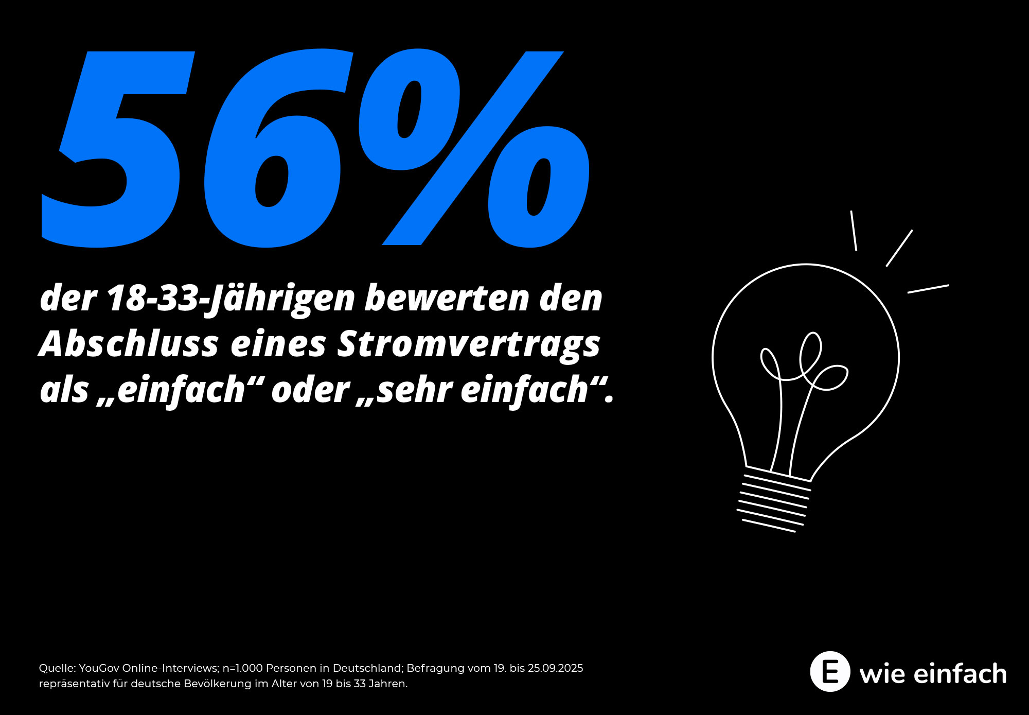 - E WIE EINFACH-Studie zeigt: Stromvertrag hat für junge Erwachsene beim Einzug hohe Priorität, dennoch wissen viele nicht, dass bei Untätigkeit automatisch die Grundversorgung greift.